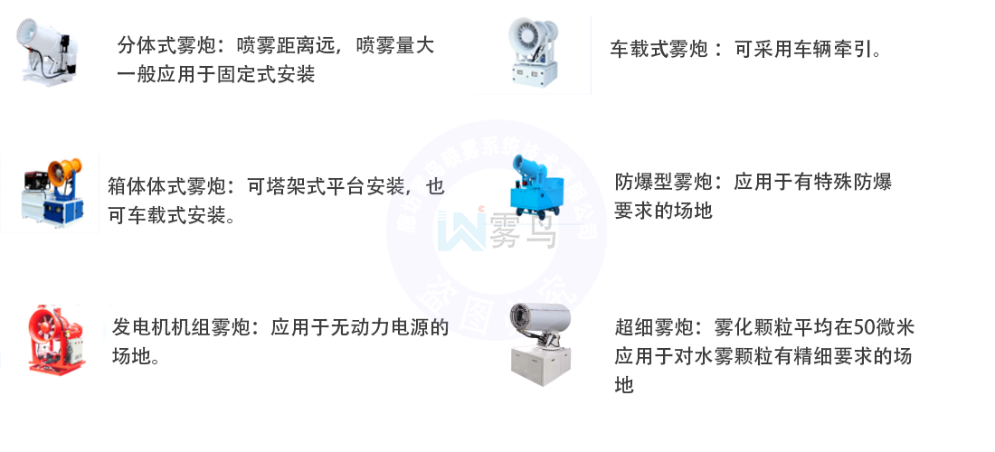 霧炮根據(jù)各種應(yīng)用場(chǎng)所不同可分為以下幾類: